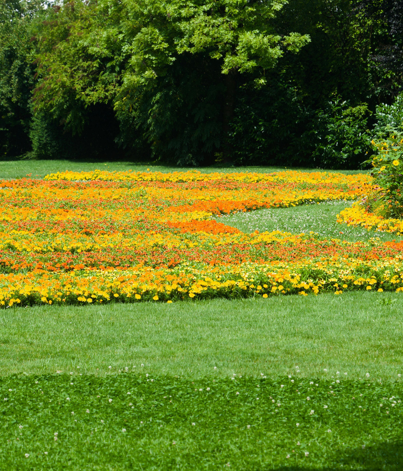 Clean, polished landscaping that enhances curb appeal with tidy garden beds, shrubs, and seasonal upkeep.